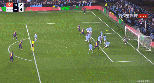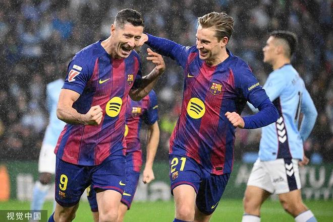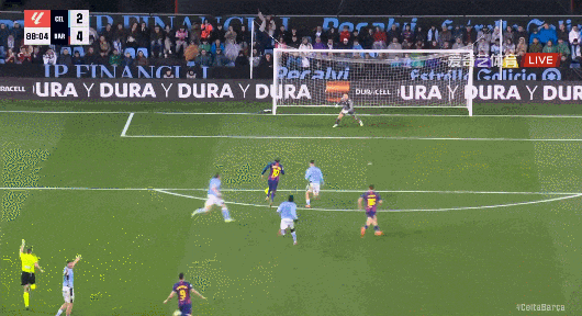 紧追皇马!巴萨客场4比2塞尔塔 37岁莱万戴帽亚马尔建功