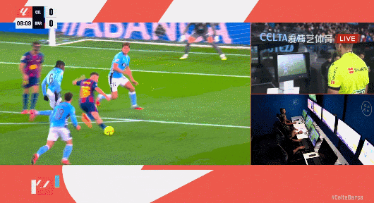 第8分钟,费尔明射门击中对手手臂,VAR加入巴萨获得点球。